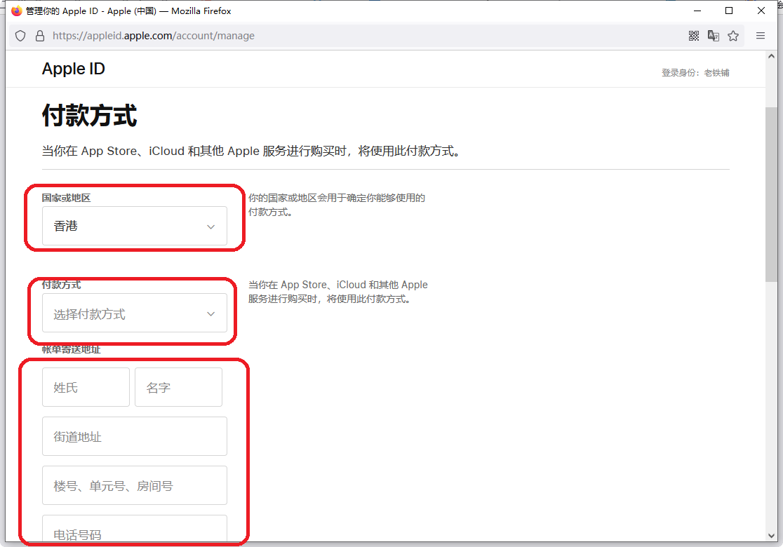 把国家选择成你需要的国家,付款方式选择你需要是方式,如果不知道填什么,或者不具备就选择无。