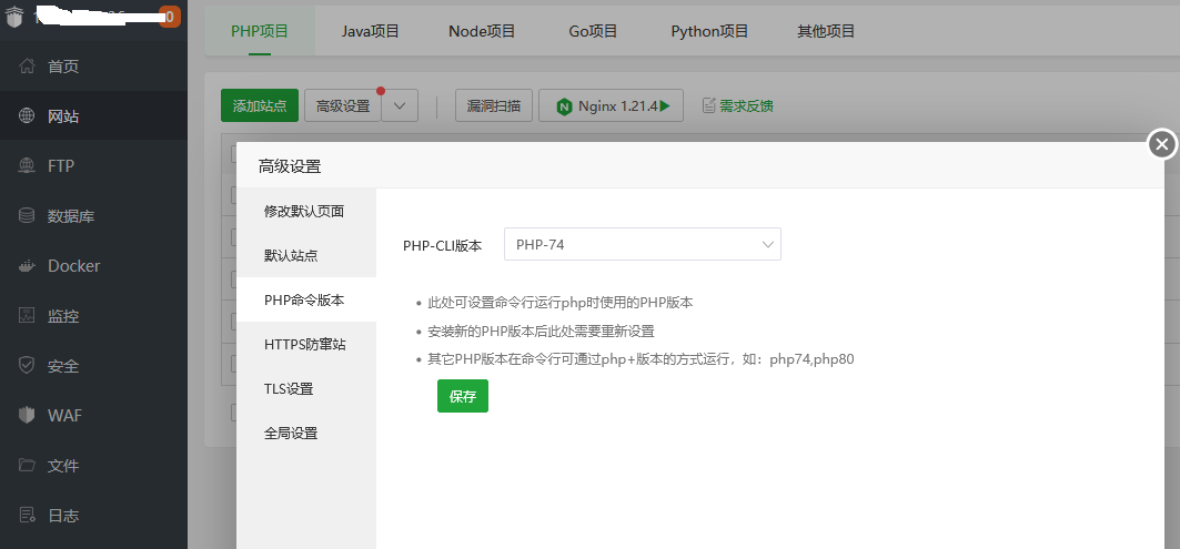 在宝塔里面,点站点,高级属性里面选择 PHP命令版本 选择到你站点对应的PHP版本 保存即可。
