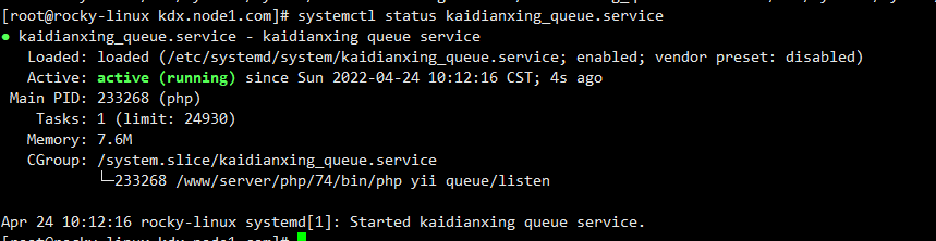 systemctl status kaidianxing_queue.service如下返回绿色active (running)说明队列服务正常启动