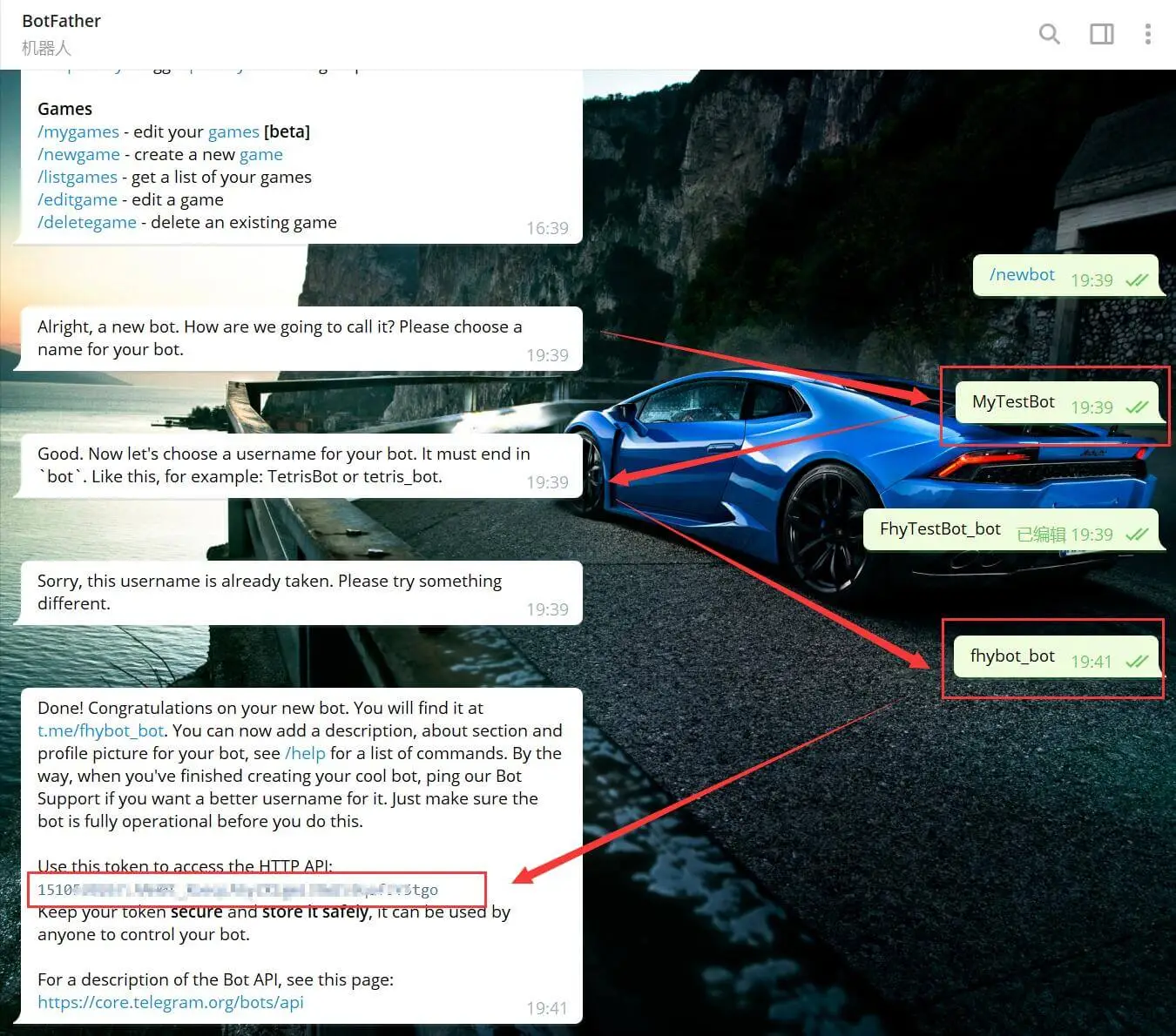 fhybot_bot:是最终给机器人起的Username。