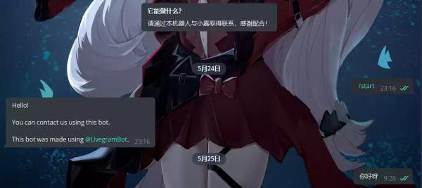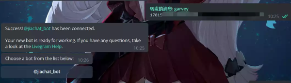 点击 @LivegramBot 向它发送 /addbot 指令,然后发送刚刚创建机器人 Token。
