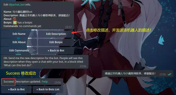 Edit Botpic:给机器人上传一张美美的头像,须压缩图,不能是文件。