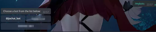 给 BotFather 发送 /mybots 指令,选择私聊机器人