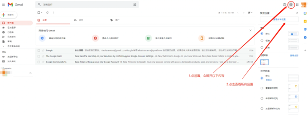 接下来登陆自己的邮箱号,然后点击右上角设置的齿轮——查看所有设置