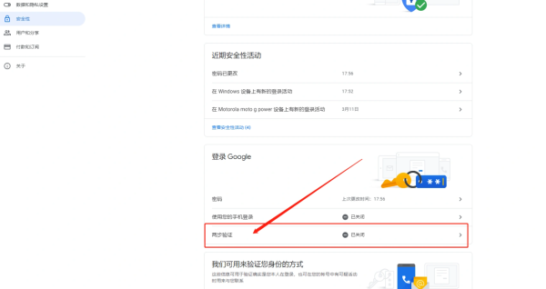 按照google的要求开通两步验证即可,过程中需要绑定个手机号,以下是开通后的界面: