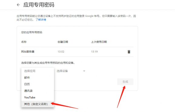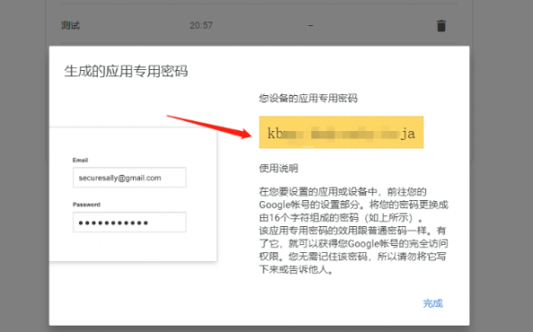 生成后会得到一段独立密码,复制保存好,如果忘记就只能删除 重新生成。